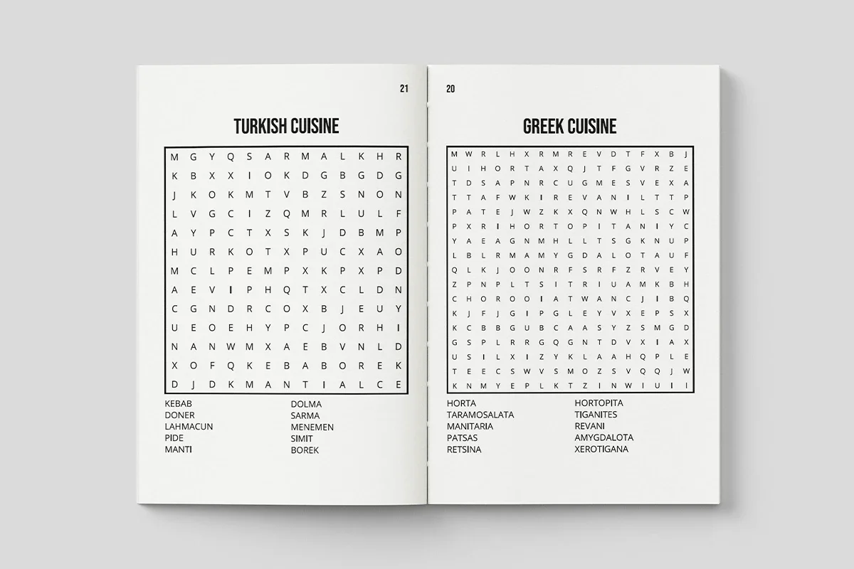 The book contains over 150 unique word search puzzles and features more than 1,600 culinary terms from around the world.